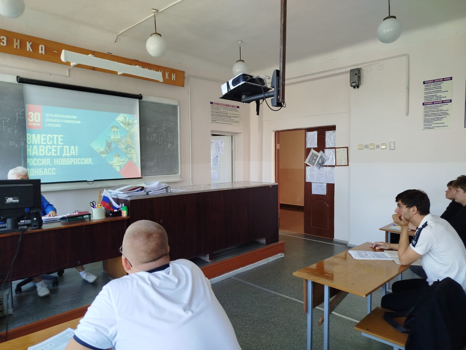 30 сентября в нашей стране отмечается День воссоединения Донецкой Народной Республики, Луганской Народной Республики, Запорожской области и Херсонской области с Российской Федерацией. На уроках истории преподавателями Румянцевой Н.Н. и Ковалевой В.В. были проведены беседы о возвращении этих регионов на историческую Родину. Обучающиеся вспомнили о том, что до этого в течение восьми лет жители Донбасса отстаивали право говорить на русском языке, изучать русскую литературу и культуру. Памятная дата показывает необходимость быть верным Отечеству и хранить его историю.